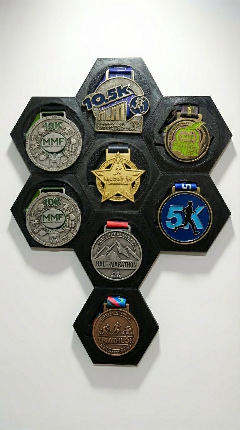 No dejes que tus logros acumulen polvo en un cajón. Transforma tu pared en un tributo a tu esfuerzo con nuestro Medallero Modular. Diseñado para el atleta moderno, este soporte no es solo un gancho; es una pieza de decoración geométrica que crece contigo, carrera tras carrera.